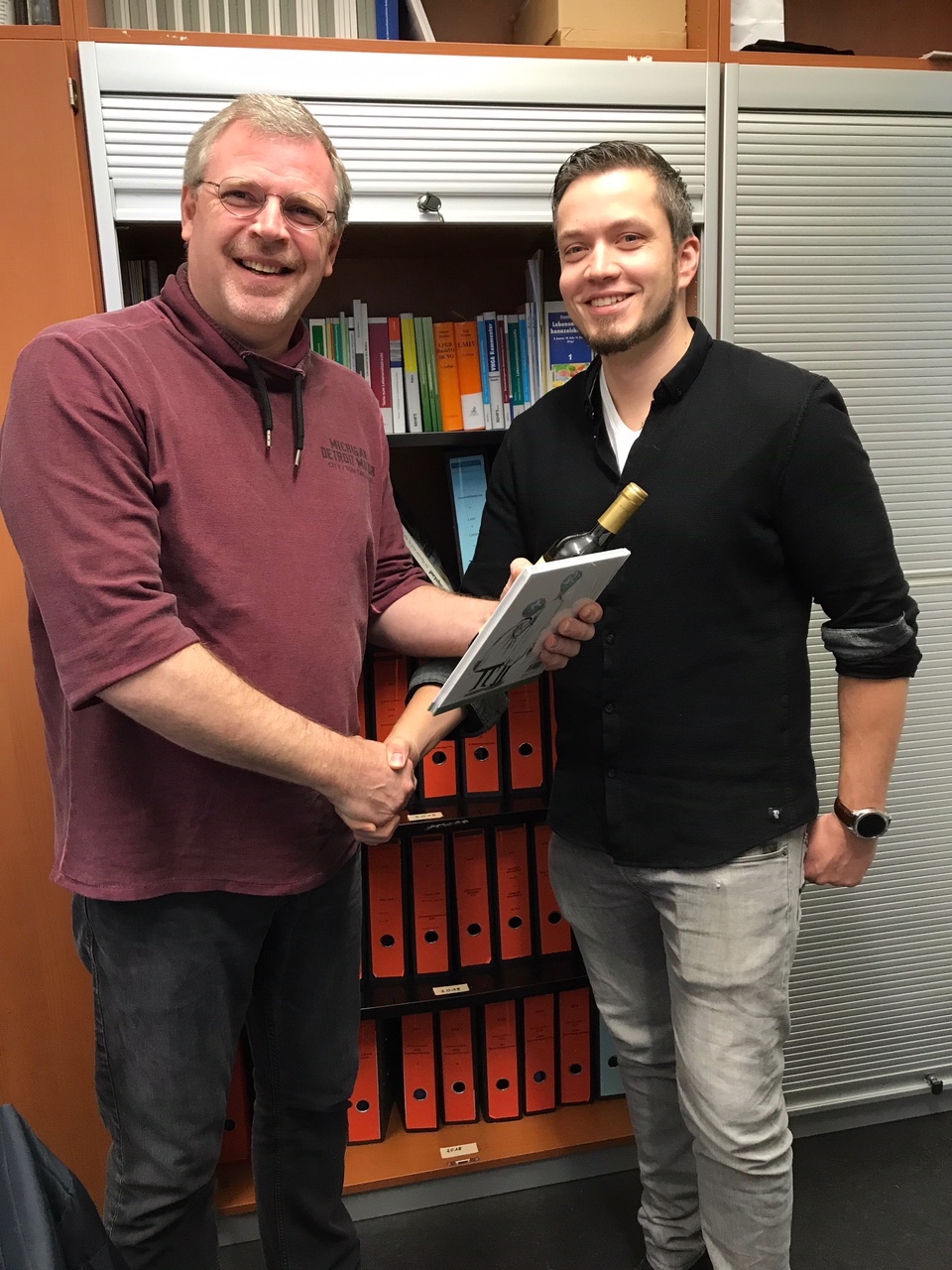 Am 19.12.2019 legte unser Kollege Michael E. erfolgreich den letzten Teil seiner Prüfung zum Lebensmittelkontrolleur ab. Der Vorstand des Landesverbandes der Lebensmittelkontrolleure Saar e.V. gratulierte im Auftrag aller Mitglieder zum erfolgreichen Abschluss der zweijährigen Ausbildung und zur Übernahme in das Kontrolleurteam des Landesamtes für Verbraucherschutz. Wir wünschen Michel viel Erfolg bei seiner beruflichen Zukunft und viel Spaß im künftigen Arbeitsbereich des Sachgebietes West.